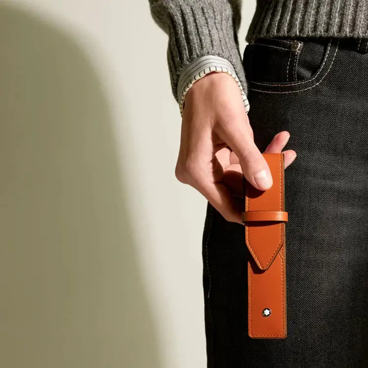 The Montblanc Meisterstück 198814 pen case is a masterpiece of craftsmanship and design. Crafted from premium genuine leather, it brings together a luxurious aesthetic and long-lasting durability. With dimensions of 30 × 18 × 160 mm, it offers the ideal fit for a single writing instrument — a tool whose significance often goes beyond mere functionality. Every aspect — from the fine stitching to the polished hardware — reflects meticulous attention to detail. The smooth leather texture and subtle Montblanc logo project prestige and refined taste. More than a practical accessory, this case is a collector’s item, suited for professionals and aficionados alike. The soft interior lining protects your pen from scratches while the resilient exterior ensures longevity. Its minimalist form and high-quality material make it a stylish addition to any bag, briefcase or desk. With this product, you not only choose excellent design, but also express your own brand of distinction.
