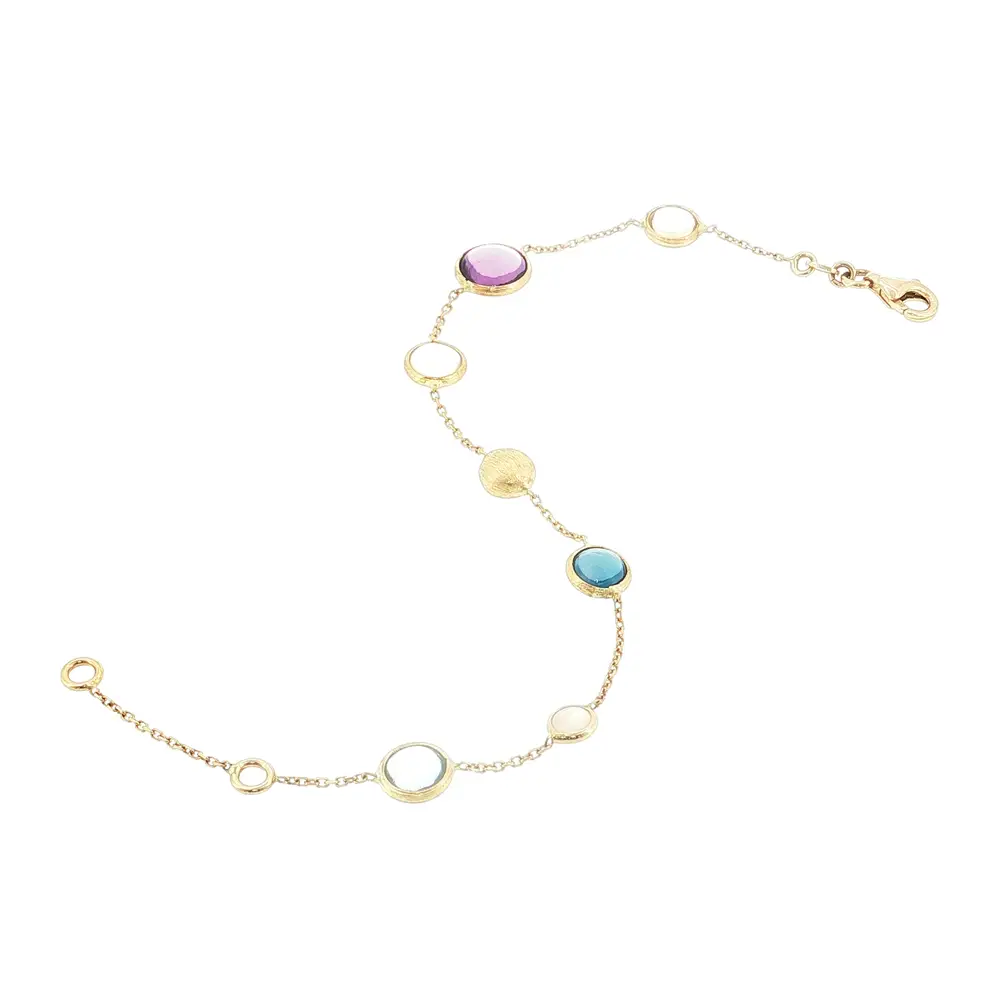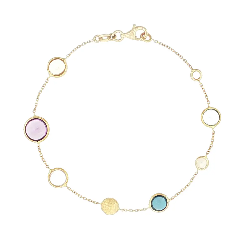 Elegant 14k gold bracelet is a perfect choice for women who love delicate yet eye-catching jewelry. The fine chain is decorated with 6 colored gemstones, creating a harmonious and timeless design. It is ideal for everyday wear as well as special occasions.