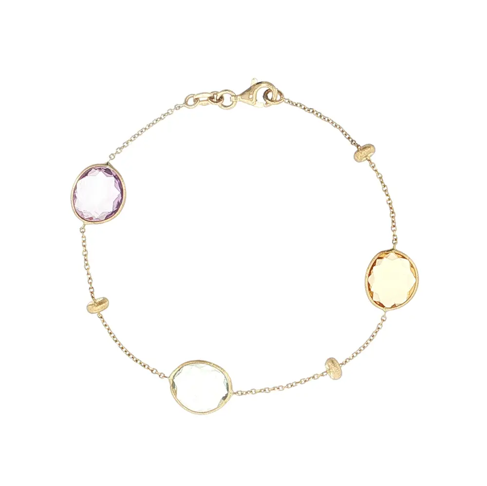 Elegant 14k gold bracelet with multicolored stones is the perfect accessory for women who love delicate yet original jewelry. The colorful stones give the bracelet a fresh and playful look, making it easy to enhance any outfit. It is suitable for everyday wear as well as special occasions.