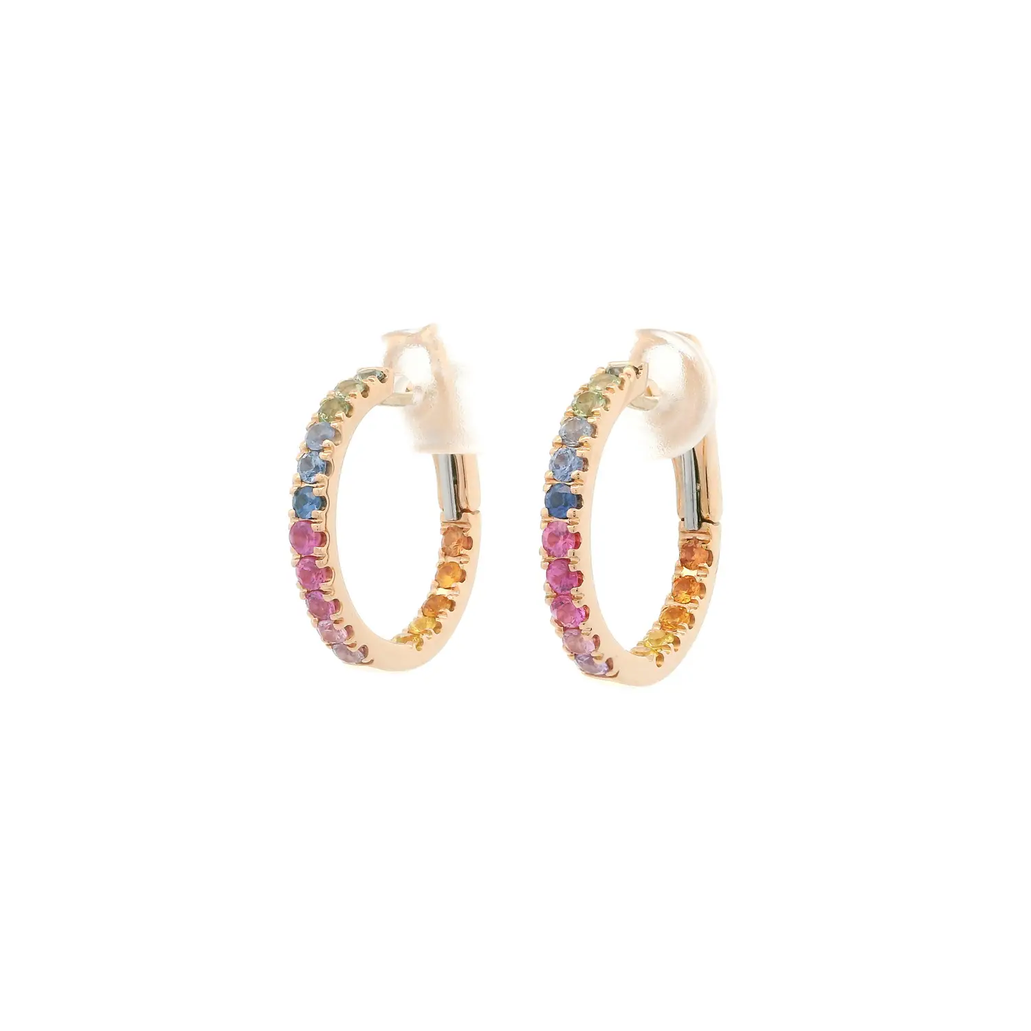 18K Rose Gold Hoop Earrings with Multicoloured Sapphires