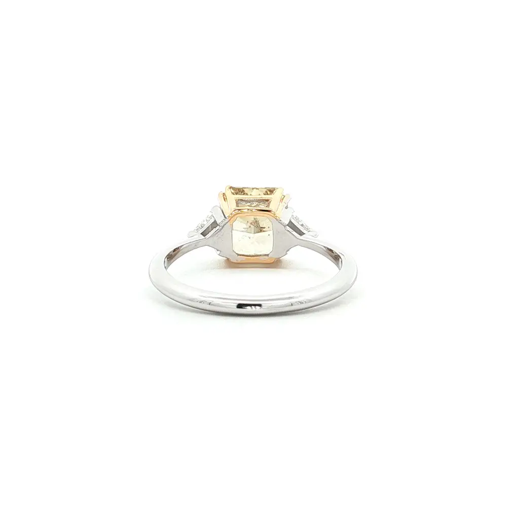 This exceptional ring is crafted from 18kt gold and adorned with a rare fancy yellow diamond, which instantly becomes the centerpiece of the jewel. With its unique hue and cut, the gemstone radiates elegance and bold sophistication.