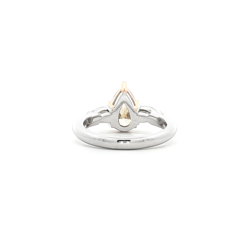 This elegant ring is crafted from 18kt gold and features a rare fancy yellow pear-cut diamond, instantly captivating with its warm hue and brilliance. The exceptional stone symbolizes originality and luxury, elevating the jewel to a true masterpiece.