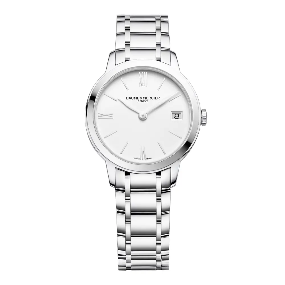The Classima collection from Baume & Mercier is the ideal combination of classic watchmaking design and everyday wearability. The elegant round case, the clean dial with Roman numerals or subtle indices and the thin hands form a harmonious whole that appeals to both men and women with a sense of style.