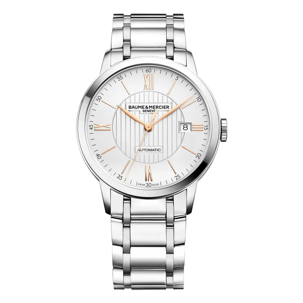 The Classima collection from Baume & Mercier is the ideal combination of classic watchmaking design and everyday wearability. The elegant round case, the clean dial with Roman numerals or subtle indices and the thin hands form a harmonious whole that appeals to both men and women with a sense of style.