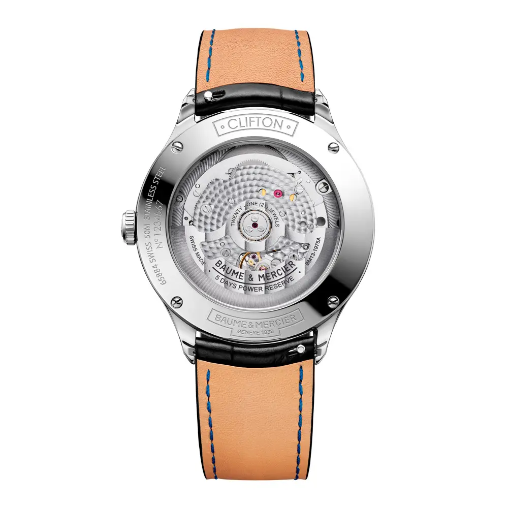 The Clifton collection embodies the spirit of traditional Swiss watchmaking combined with a modern aesthetic. It is inspired by Baume & Mercier's archival models from the 1940s, which are brought to life again in an elegant and contemporary concept. The Clifton watch stands out for its clean lines, gently rounded case and classic dial, giving it a timeless and versatile feel.