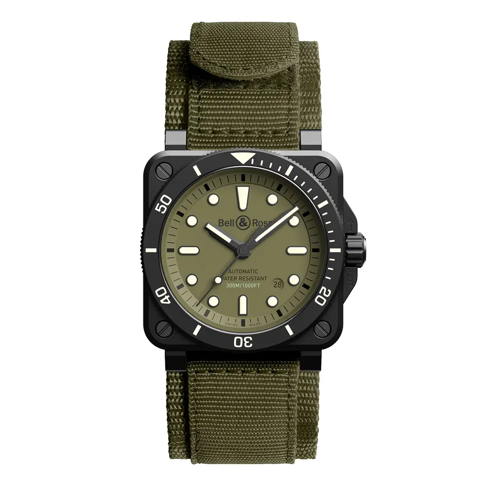 The Bell & Ross BR 03-92 Diver Military is a professional diver’s watch combining high-performance mechanics, a military-inspired look, and the legendary legibility that defines the Bell & Ross brand. Engineered to withstand the most extreme conditions both underwater and on land.