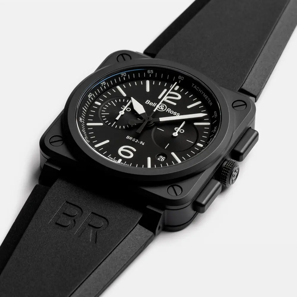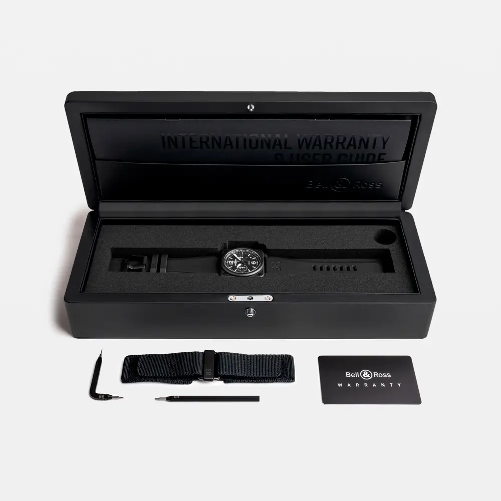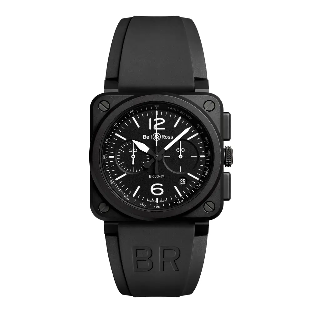 The Bell & Ross BR 03-94 Black Matte (Ref. BR0394-BL-CE) embodies the pure essence of aviation and military design that defines the Bell & Ross identity. Designed as a professional instrument, this chronograph draws inspiration from aircraft cockpit instruments — functional, precise, and full of character.