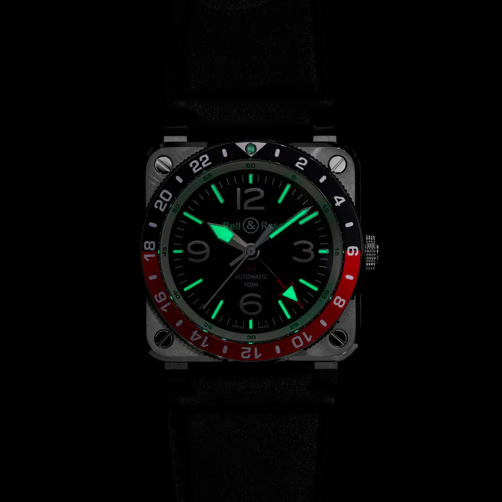 The Bell & Ross BR 03-93 GMT is a refined tool watch designed for world travelers who need to keep track of two time zones simultaneously. Its design is both functional and striking, staying true to the brand’s aviation-inspired heritage.