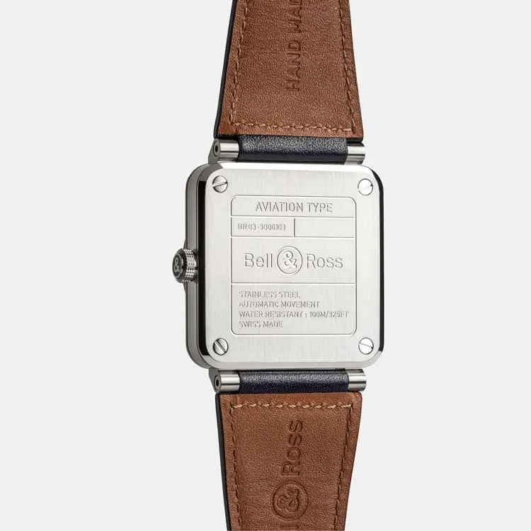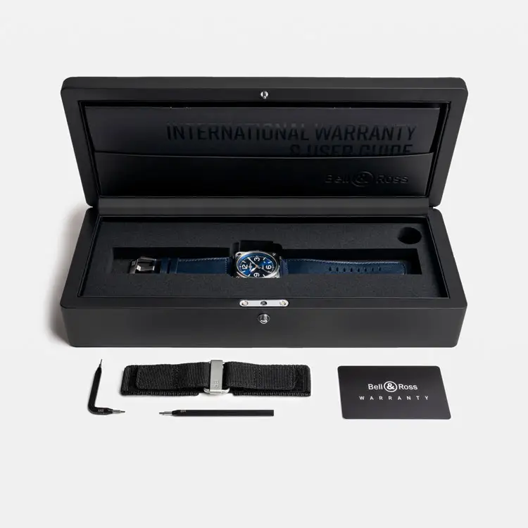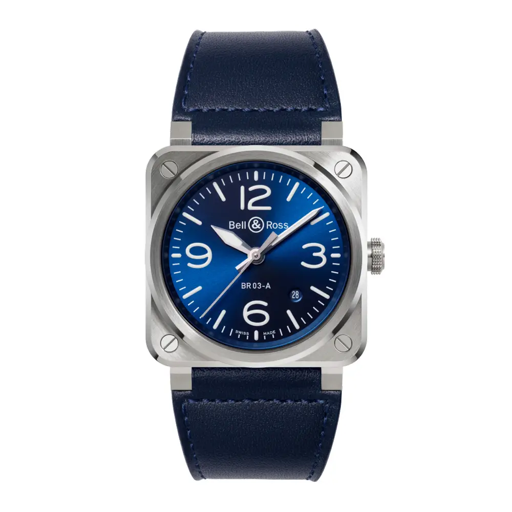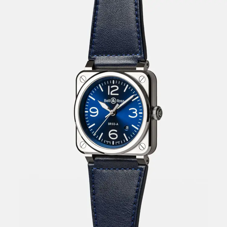 Powered by the automatic BR-CAL.302 movement with a 54-hour power reserve, this model guarantees accuracy and reliability. The blue leather strap with pin buckle complements the dial and provides a luxurious wearing experience. With 100m (10 bar) water resistance, the Bell & Ross BR 03 Blue Steel embodies style, precision, and timeless elegance – ready for any occasion.