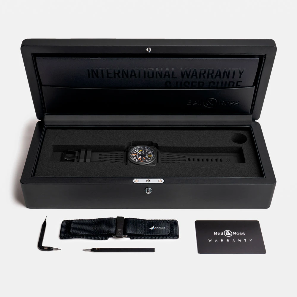 Water-resistant to 100 meters, the watch is delivered on a robust rubber strap and comes with an additional textile strap bearing the Rafale Solo Display insignia. The BR-03 Chrono Rafale Solo Display unites aviation spirit, limited-edition exclusivity, and Swiss horological precision – a perfect choice for collectors and aviation enthusiasts.