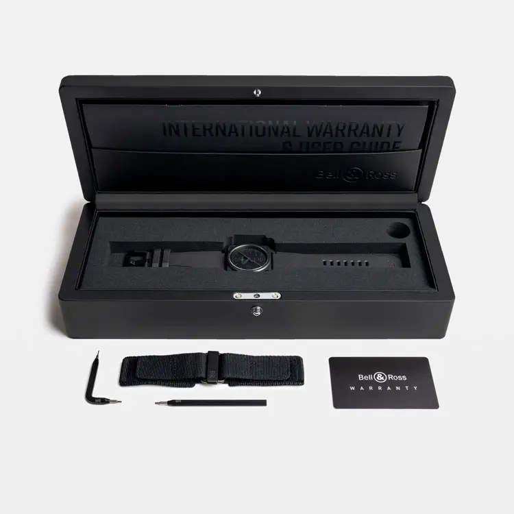 Powered by the automatic BR-CAL.302 movement with a 54-hour power reserve, the watch guarantees precision and reliability. The black rubber strap with pin buckle complements the matte finish while providing comfort and flexibility. With 100m (10 bar) water resistance, the Bell & Ross BR 03 Phantom stands as a symbol of quiet power, technical mastery, and timeless discretion.