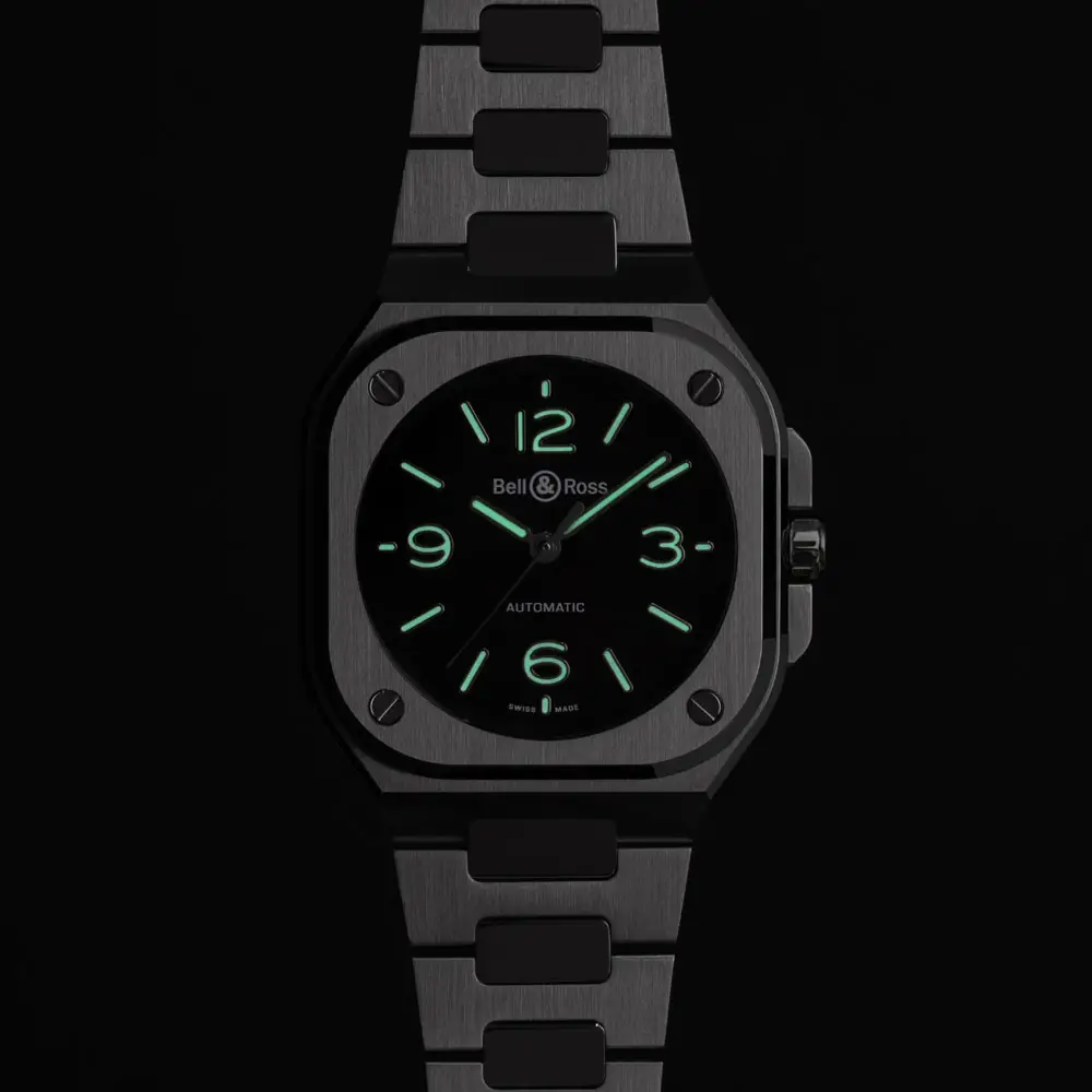The Bell & Ross BR 05 collection strikes the perfect balance between urban sophistication and the brand's signature technical design. In contrast to the rugged BR 03 aviation models, the BR 05 range is tuned to a more civil form without losing its distinctive identity - the square case with rounded corners and integrated bracelet create a smooth, compact ensemble that fits the wrist with unprecedented comfort.