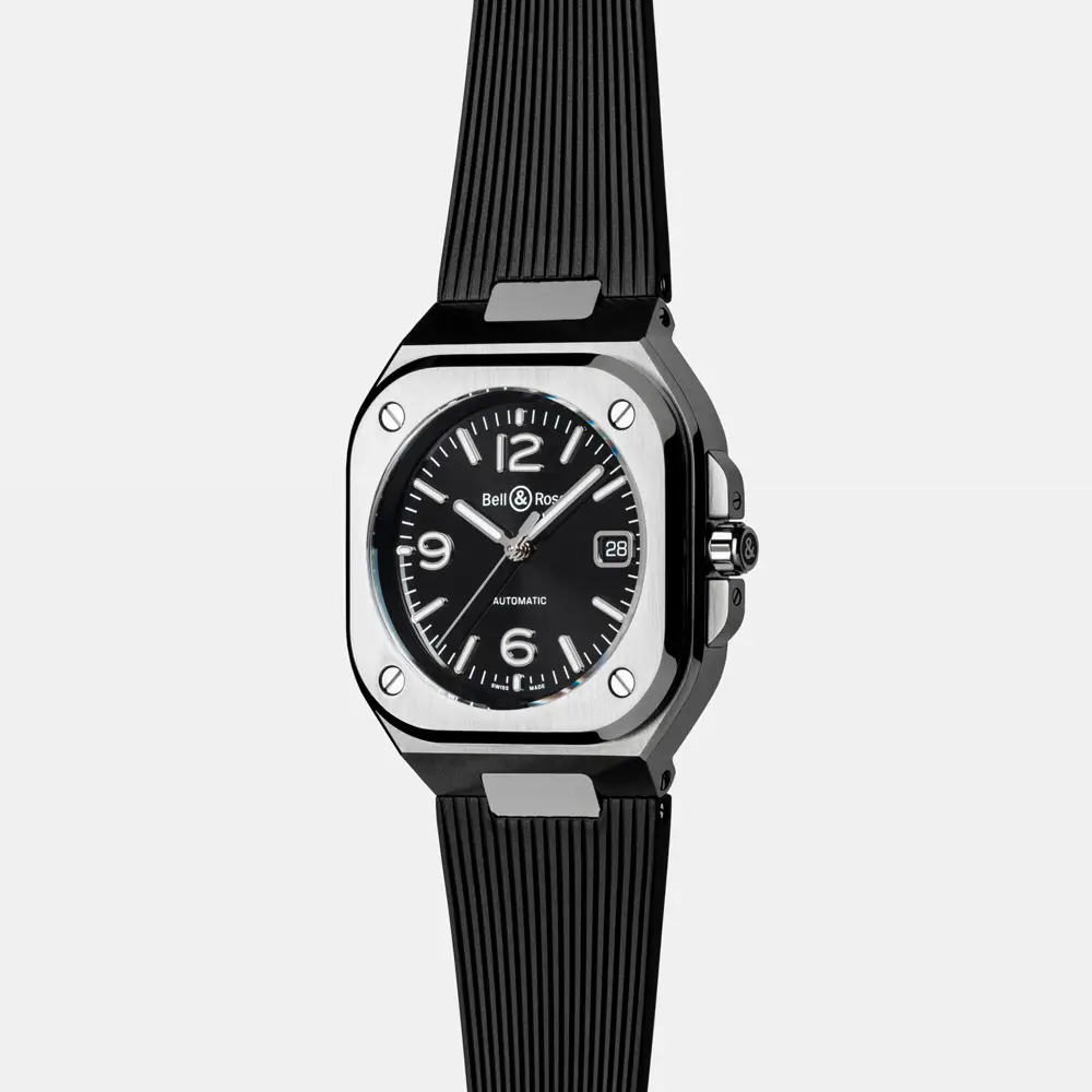 The Bell & Ross BR 05 collection strikes the perfect balance between urban sophistication and the brand's signature technical design. In contrast to the rugged BR 03 aviation models, the BR 05 range is tuned to a more civil form without losing its distinctive identity - the square case with rounded corners and integrated bracelet create a smooth, compact ensemble that fits the wrist with unprecedented comfort.