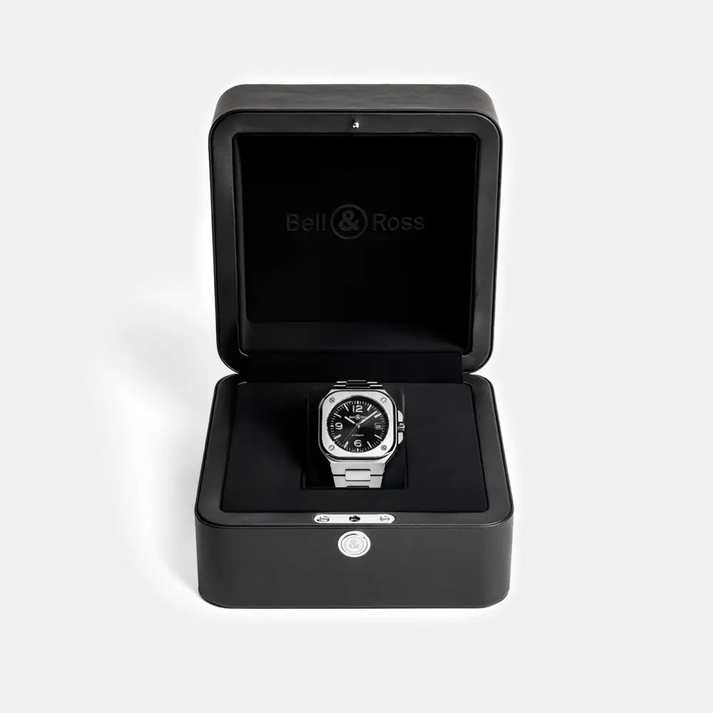 The Bell & Ross BR 05 Black Steel (Ref. BR05A-BL-ST/SST) embodies modern urban elegance and technical precision. With its iconic square design, this model combines the strength of a sports watch with refined sophistication — perfect for both daily wear and formal occasions.