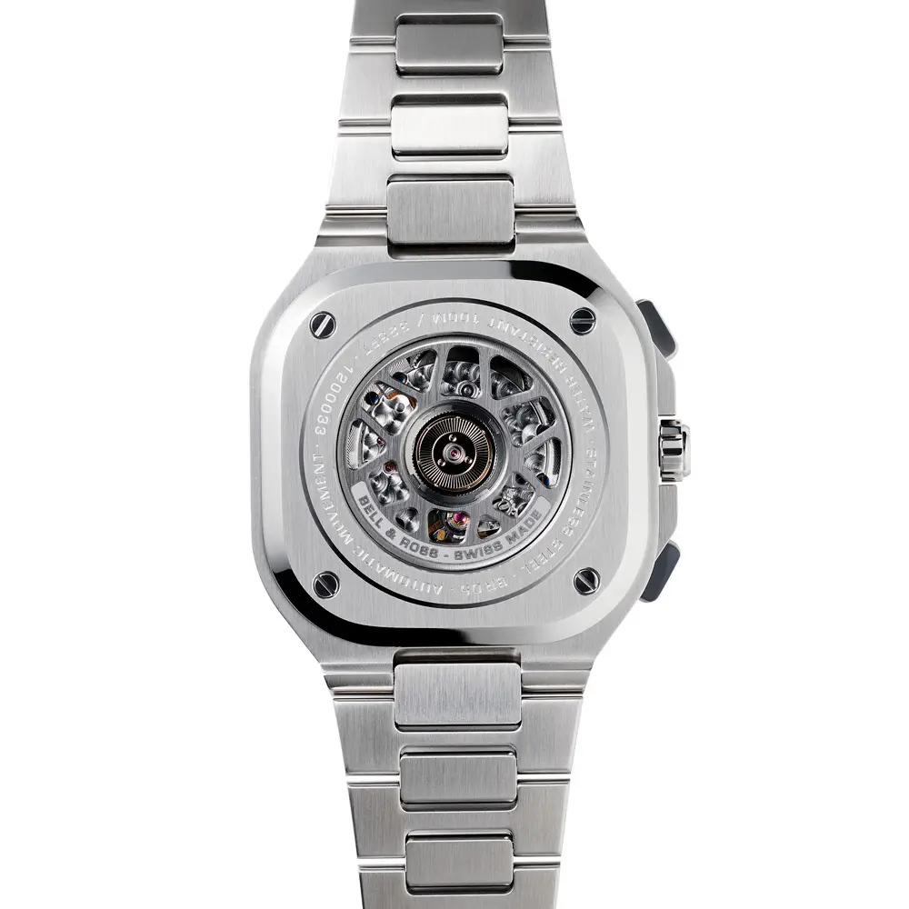 The BR 05 models are manufactured in La Chaux-de-Fonds, Switzerland, combining precision mechanics with automatic movements and luxurious materials such as stainless steel, rose gold, skeletonized finishes and ceramic. There are also variants with an integrated steel tension, rubber strap or diamond details for an even more distinctive look.