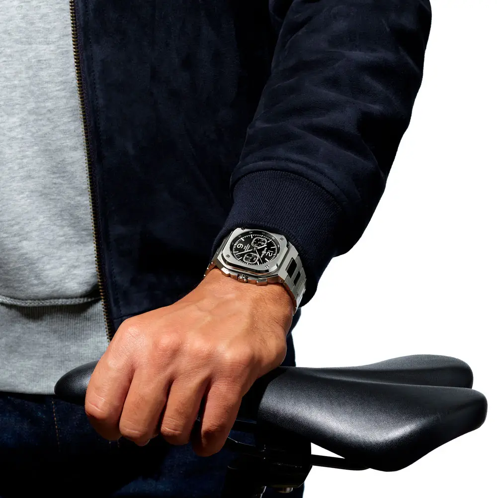 The Bell & Ross BR 05 Chrono Black Steel represents the perfect balance between urban elegance and sporty functionality. These luxurious chronographs with their industrial design are crafted for men who value reliability, performance, and refined style in a single precision instrument.