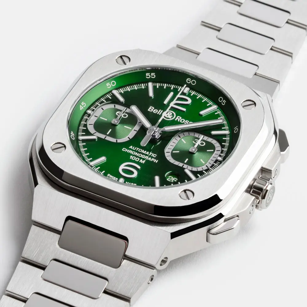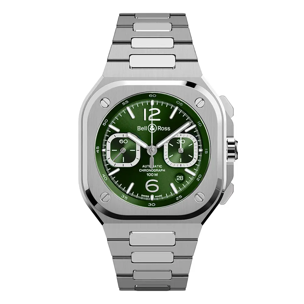 The Bell & Ross BR 05 Chrono Green Steel delivers fresh energy, confident style, and technical precision in a single design. Created for the modern man who values both performance and aesthetics, this chronograph perfectly embodies the spirit of contemporary urban living.