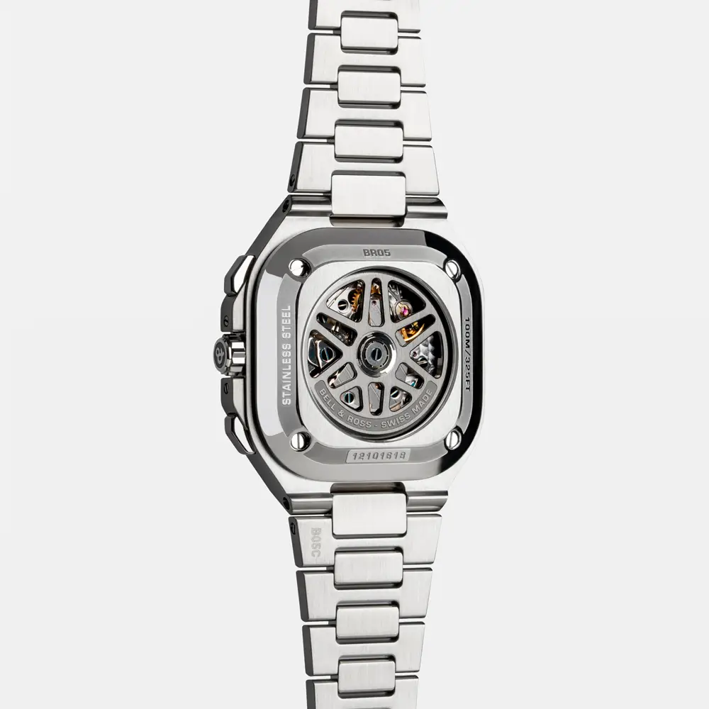 The BR 05 models are manufactured in La Chaux-de-Fonds, Switzerland, combining precision mechanics with automatic movements and luxurious materials such as stainless steel, rose gold, skeletonized finishes and ceramic. There are also variants with an integrated steel tension, rubber strap or diamond details for an even more distinctive look.