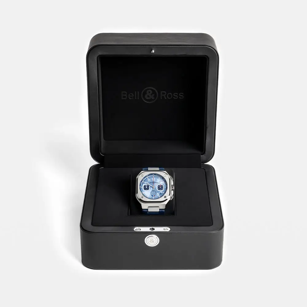 The BR 05 models are manufactured in La Chaux-de-Fonds, Switzerland, combining precision mechanics with automatic movements and luxurious materials such as stainless steel, rose gold, skeletonized finishes and ceramic. There are also variants with an integrated steel tension, rubber strap or diamond details for an even more distinctive look.
