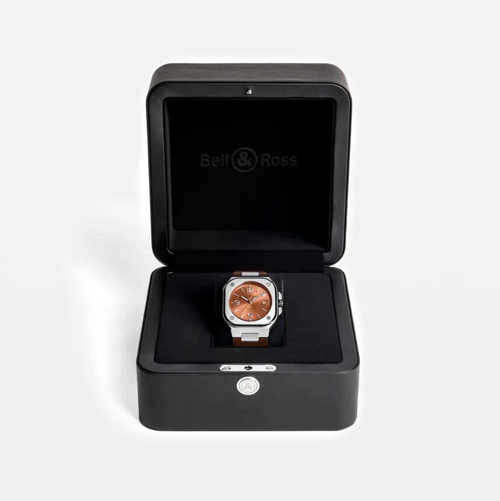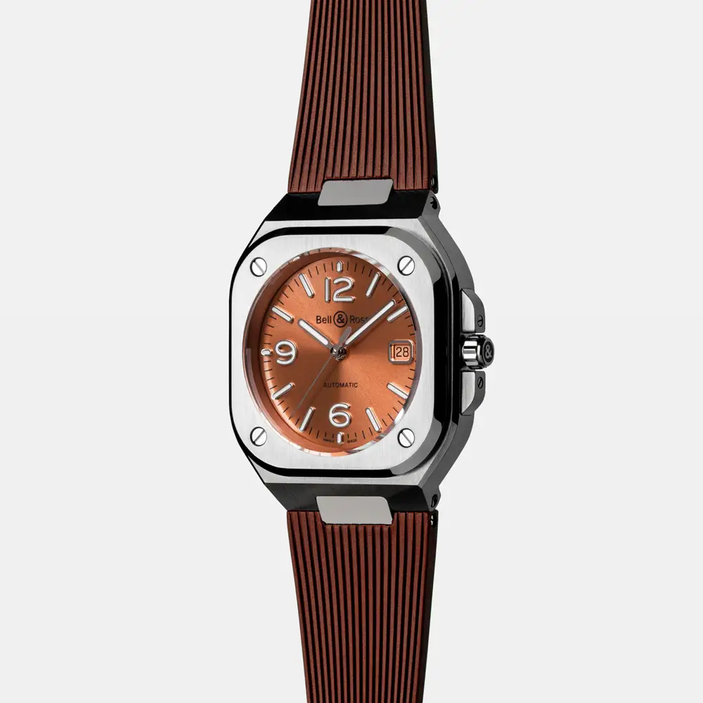 The Bell & Ross BR 05 Copper Brown (Ref. BR05A-BR-ST/SRB) embodies a refined blend of urban sophistication and technical precision. Its warm copper-brown sunray dial gives the watch a distinctive personality, while the stainless steel construction underscores its timeless elegance.