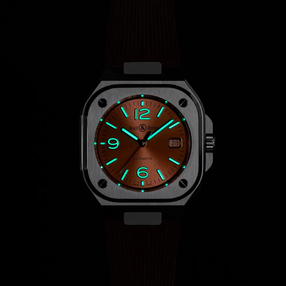 Powered by the automatic BR-CAL.321 movement with a power reserve of approximately 42 hours, the watch guarantees reliable performance. Completed with a brown rubber strap with folding clasp and 100 m (10 ATM) water resistance, the BR 05 Copper Brown is an ideal choice for those who appreciate both style and everyday practicality.