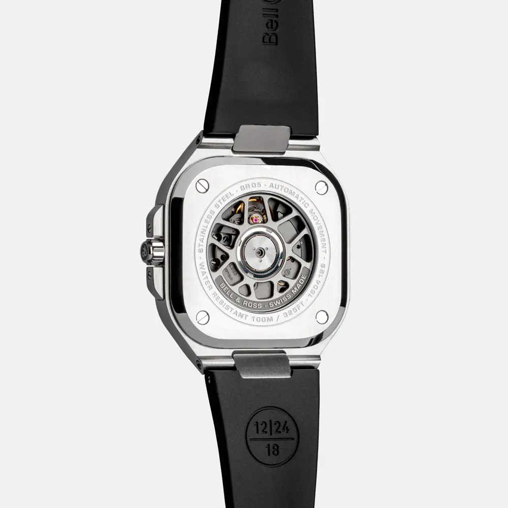 The BR 05 models are manufactured in La Chaux-de-Fonds, Switzerland, combining precision mechanics with automatic movements and luxurious materials such as stainless steel, rose gold, skeletonized finishes and ceramic. There are also variants with an integrated steel tension, rubber strap or diamond details for an even more distinctive look.