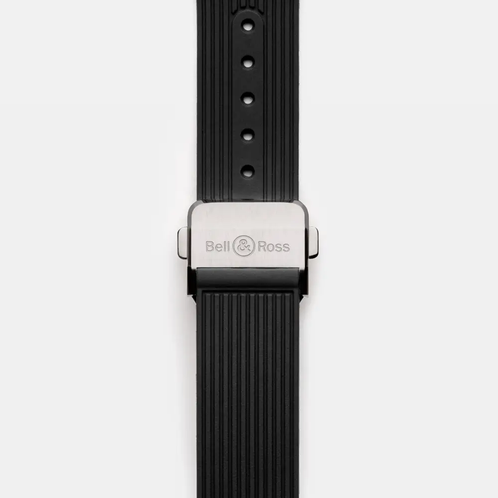 Comfort is provided by a black rubber strap with a folding clasp, complementing the watch's technical aesthetic.