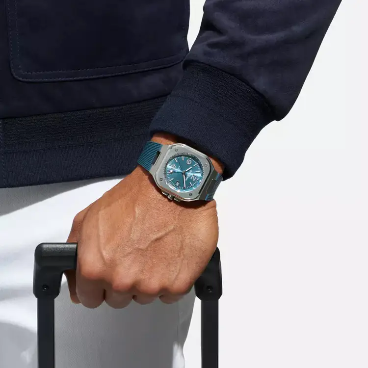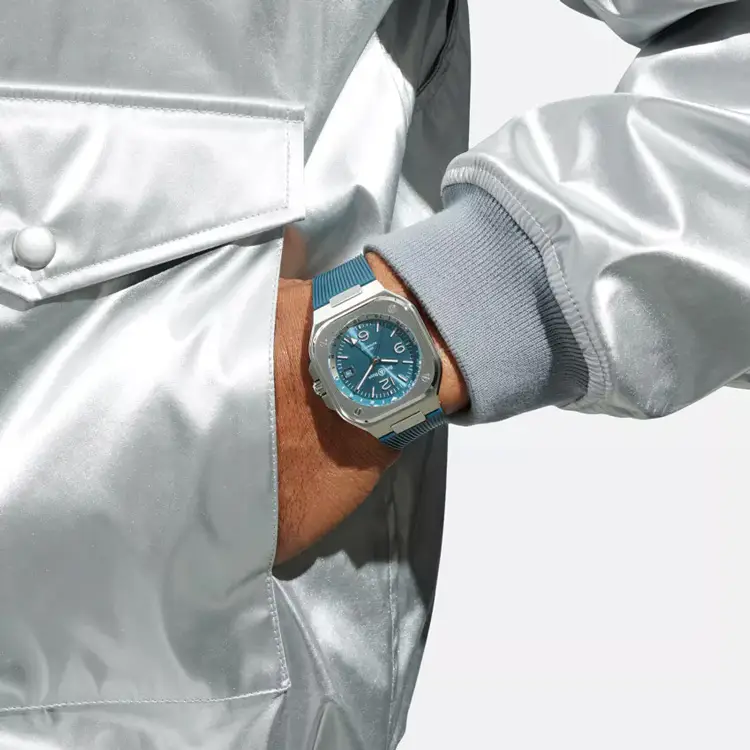 The BR 05 models are manufactured in La Chaux-de-Fonds, Switzerland, combining precision mechanics with automatic movements and luxurious materials such as stainless steel, rose gold, skeletonized finishes and ceramic. There are also variants with an integrated steel tension, rubber strap or diamond details for an even more distinctive look.