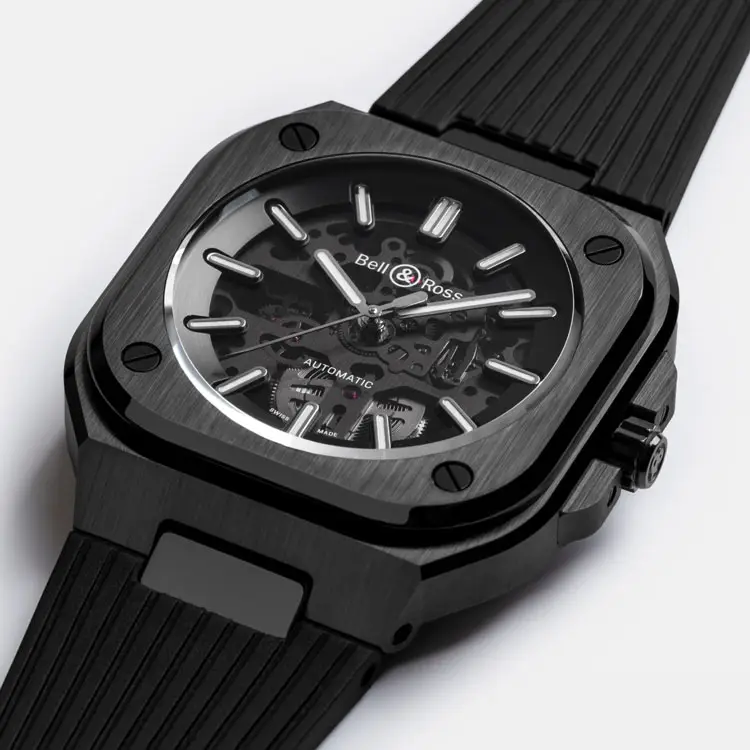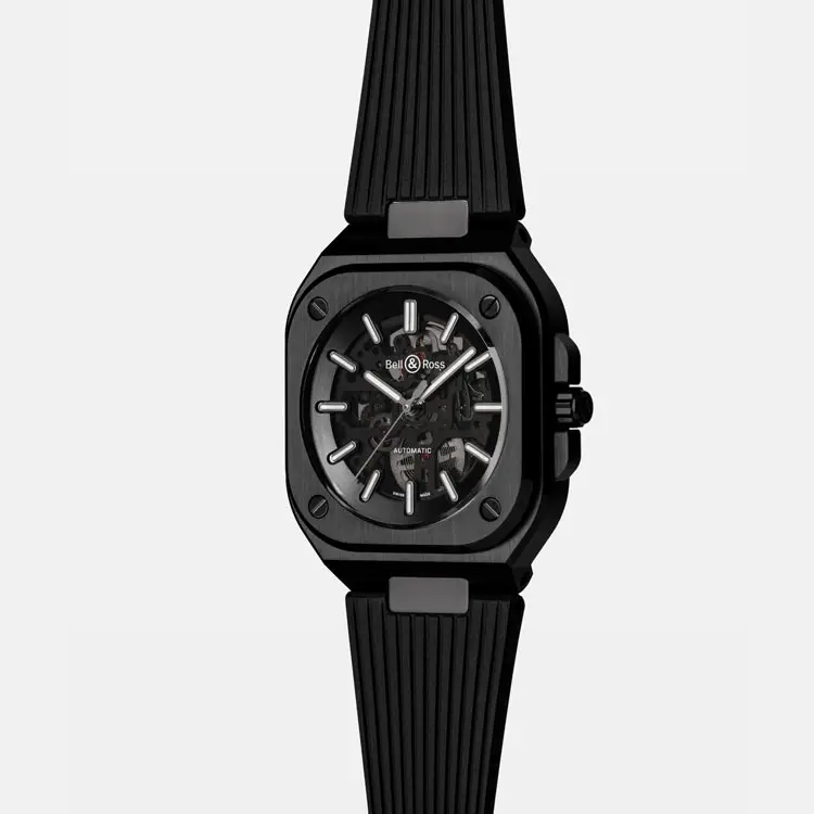 Inside beats the automatic BR-CAL.322 movement with a power reserve of approximately 54 hours, delivering precision and visual balance. Completed with a black rubber strap with folding clasp and 100 m (10 ATM) water resistance, the Bell & Ross BR 05 Skeleton Black Ceramic stands as a symbol of modern elegance, innovation, and fine watchmaking mastery.