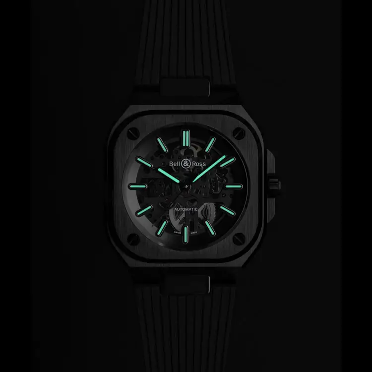 The BR 05 models are manufactured in La Chaux-de-Fonds, Switzerland, combining precision mechanics with automatic movements and luxurious materials such as stainless steel, rose gold, skeletonized finishes and ceramic. There are also variants with an integrated steel tension, rubber strap or diamond details for an even more distinctive look.
