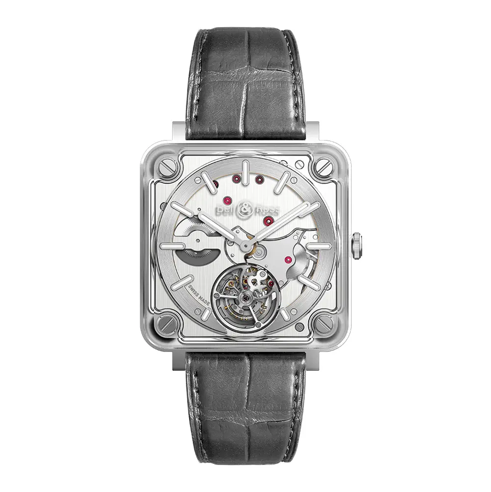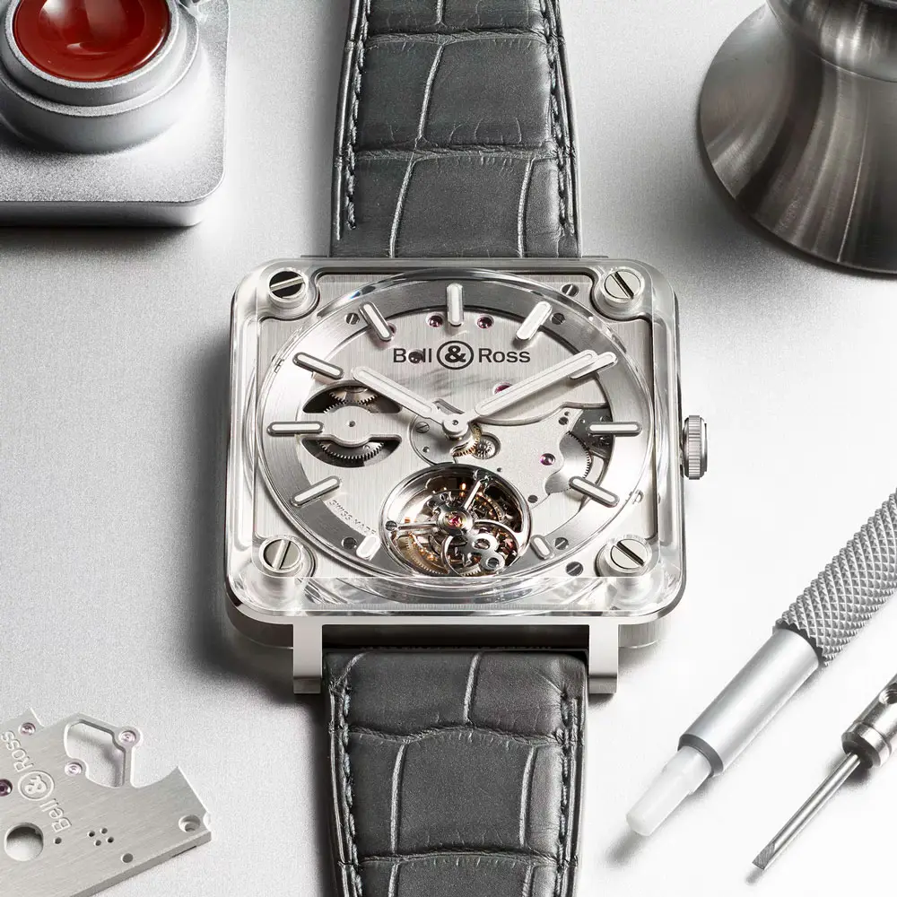 The exclusivity of the model is underlined by a limited edition of 99 pieces. Completing the watch is a grey alligator leather strap with a stainless steel folding clasp, harmonizing perfectly with the technical design. The BR-X2 Tourbillon Micro-Rotor stands as a symbol of modern haute horlogerie, combining transparent architecture, technical brilliance, and collector exclusivity.
