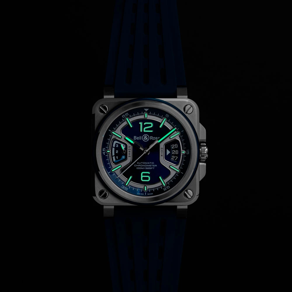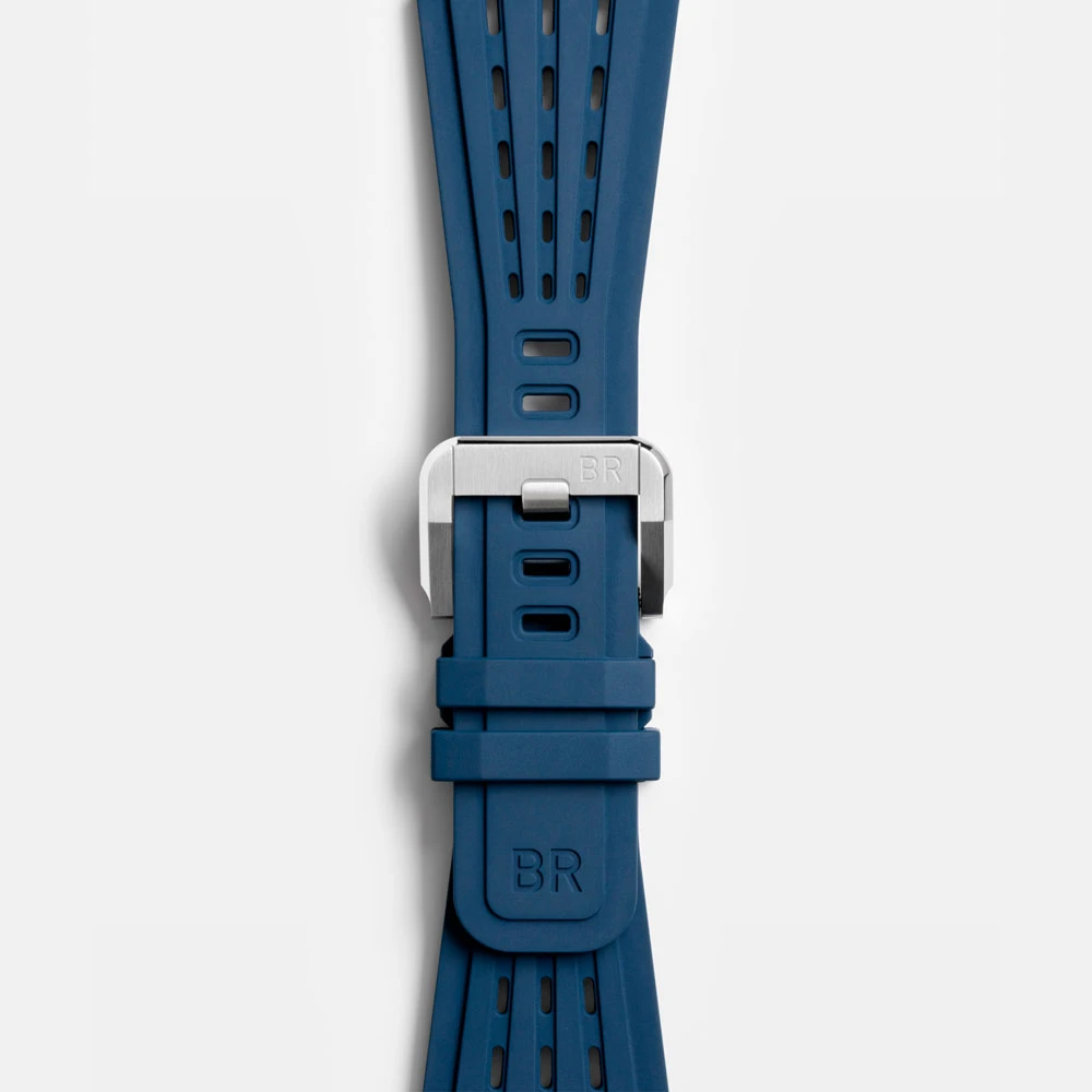 Water-resistant to 100 meters, the watch comes on a comfortable perforated rubber strap that complements its contemporary look. The Bell & Ross BR-X3 Blue Steel is the perfect choice for those seeking sporty elegance, technical mastery, and bold style in one timepiece.