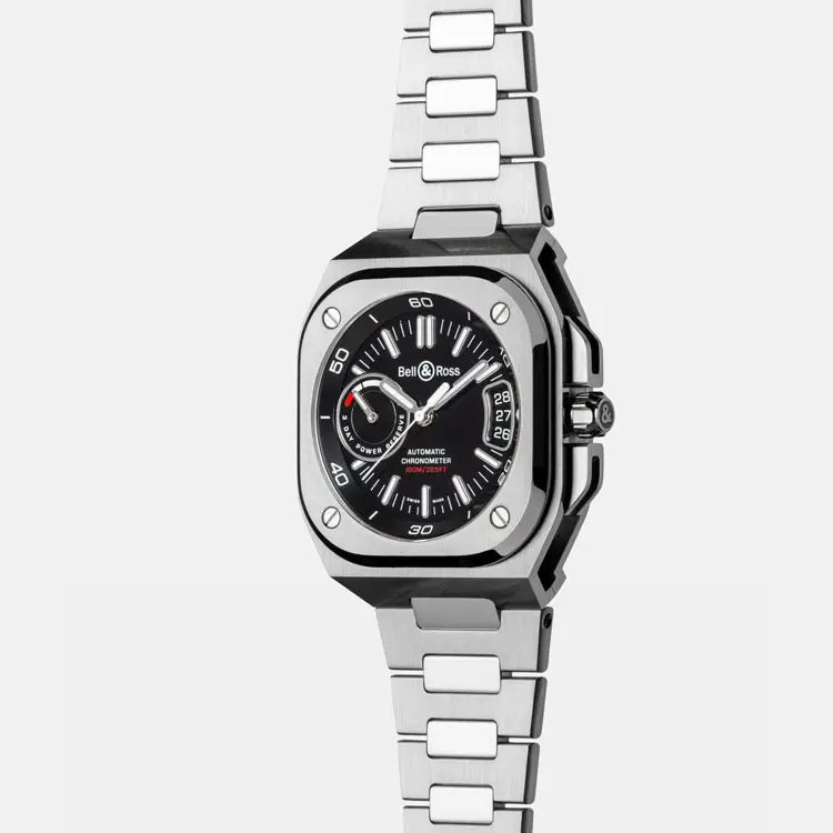 The Bell & Ross BR-X5 Black Steel blends strength, precision, and modern engineering. This BR-X5 model combines architectural robustness and technical finesse, perfect for men who value performance and style in harmony.
