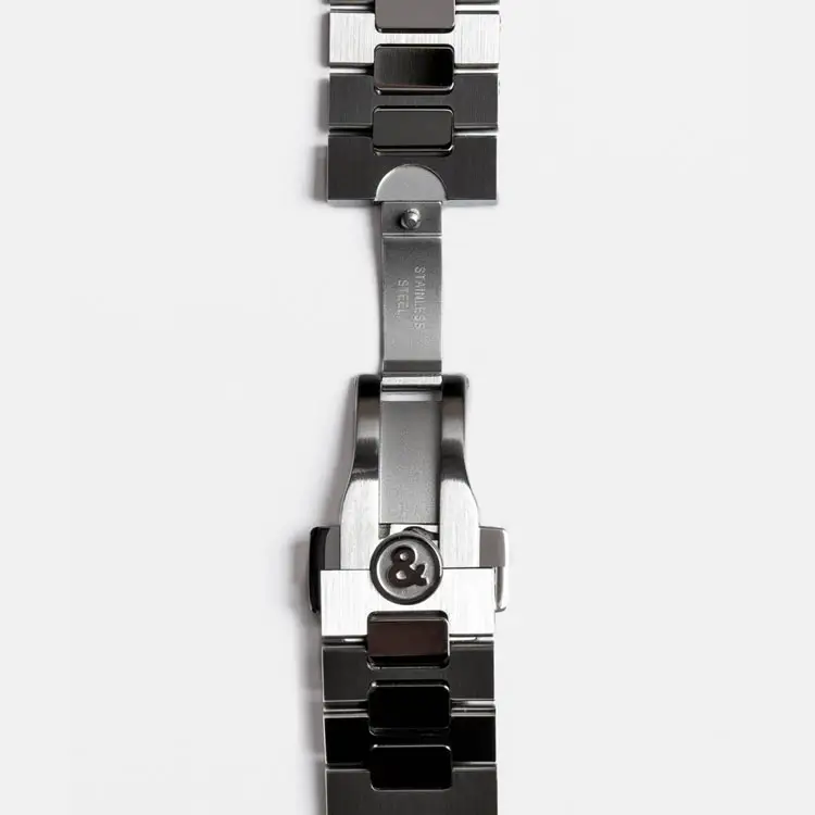 The 41 mm stainless-steel case ensures durability and refined finishing, while the anti-reflective sapphire crystal protects the black dial with luminous hands and indexes for perfect legibility day or night. A date window between 3 and 4 o’clock enhances the clean, technical layout.