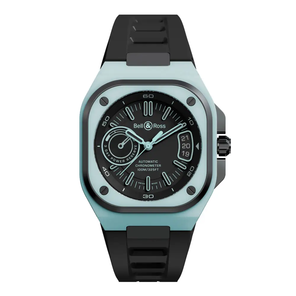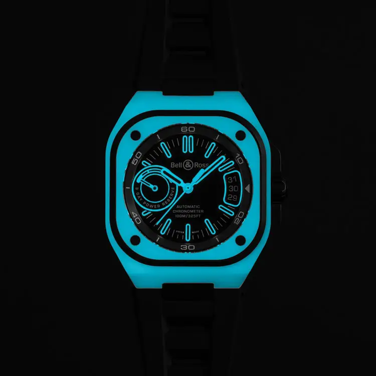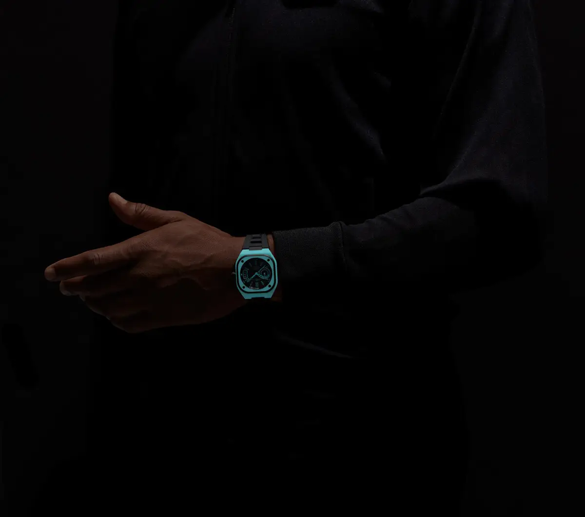 Powered by the automatic BR-CAL.323 movement, developed in collaboration with Kenissi, the watch offers a power reserve of up to 70 hours. It is fitted with a blue rubber strap with a folding clasp and provides 100 m (10 ATM) water resistance. The Bell & Ross BR-X5 Blue Lum stands as a symbol of modern innovation, technical performance, and luminous elegance.