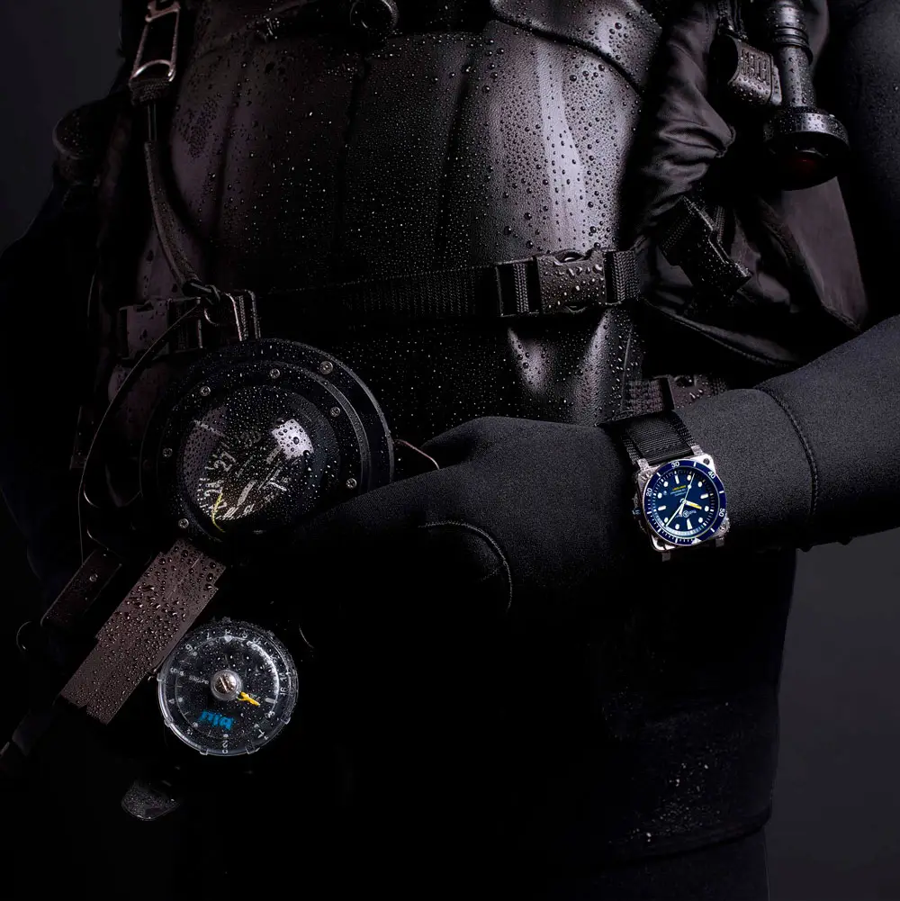 The 42 mm stainless steel case is both robust and refined. Anti-reflective sapphire crystal protects the blue dial with luminous hands and indexes for optimal legibility, even in the ocean’s depths. The unidirectional rotating bezel with diving scale and screw-down crown emphasize the professional, underwater-ready construction.
