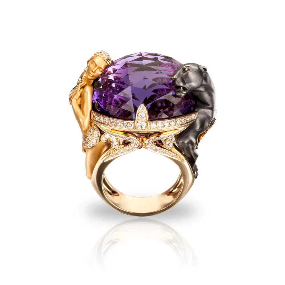 With a total weight of approx. 26.46 g, the ring offers a solid feel and luxurious presence. It is an ideal choice for women seeking a unique, high-end statement jewelry piece with strong visual impact.