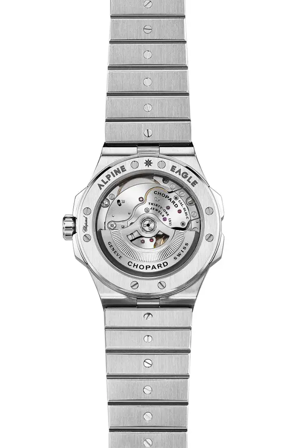 Alpine Eagle watches combine sportiness, sophistication and fine materials. The cases and the movements are made of the exclusive Lucent Steel™ alloy, developed directly by Chopard. This recycled and hypoallergenic material stands out for its exceptional shine and hardness comparable to gold.