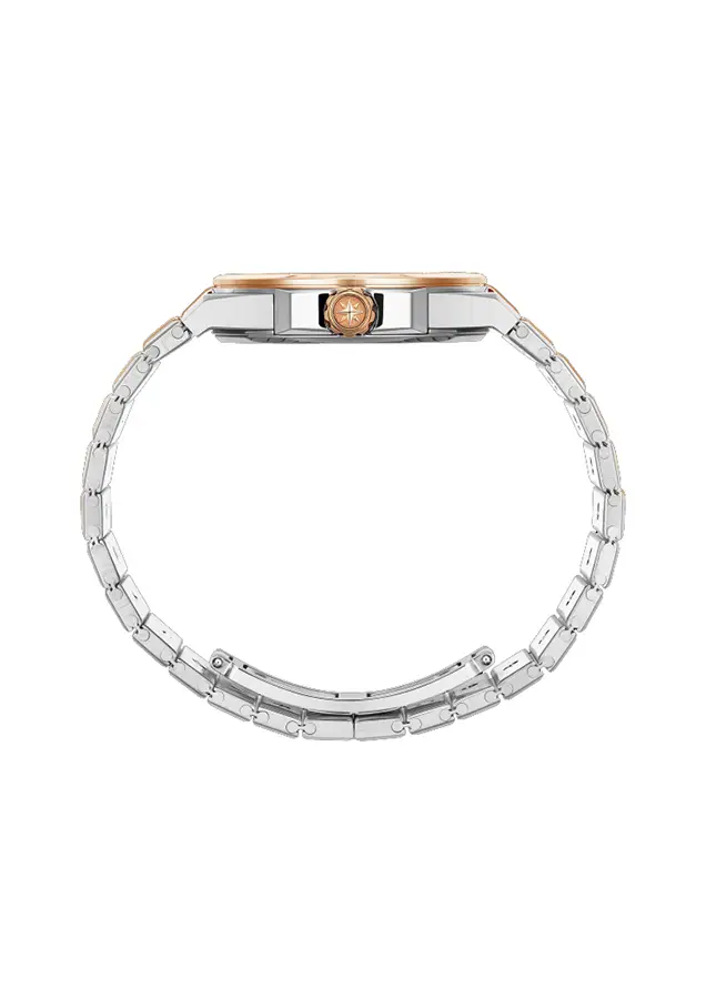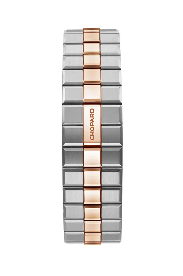 The 41 mm case blends stainless steel and luxurious 18kt rose gold, creating a striking bicolor effect. The same contrast continues on the steel and rose gold bracelet with a folding clasp for comfort and security.
