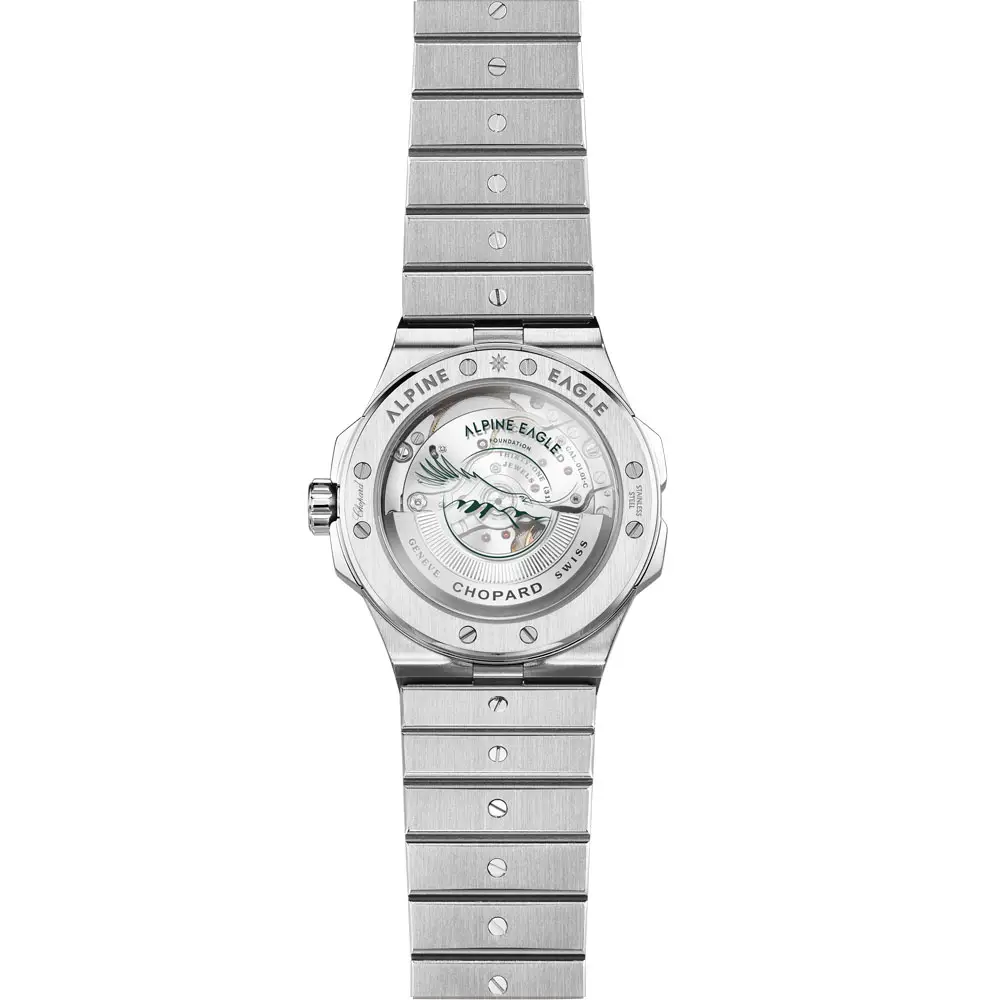 Alpine Eagle watches combine sportiness, sophistication and fine materials. The cases and the movements are made of the exclusive Lucent Steel™ alloy, developed directly by Chopard. This recycled and hypoallergenic material stands out for its exceptional shine and hardness comparable to gold.