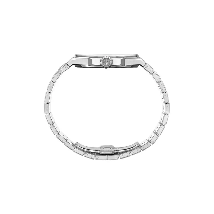 The steel bracelet with a folding clasp ensures both comfort and visual harmony.