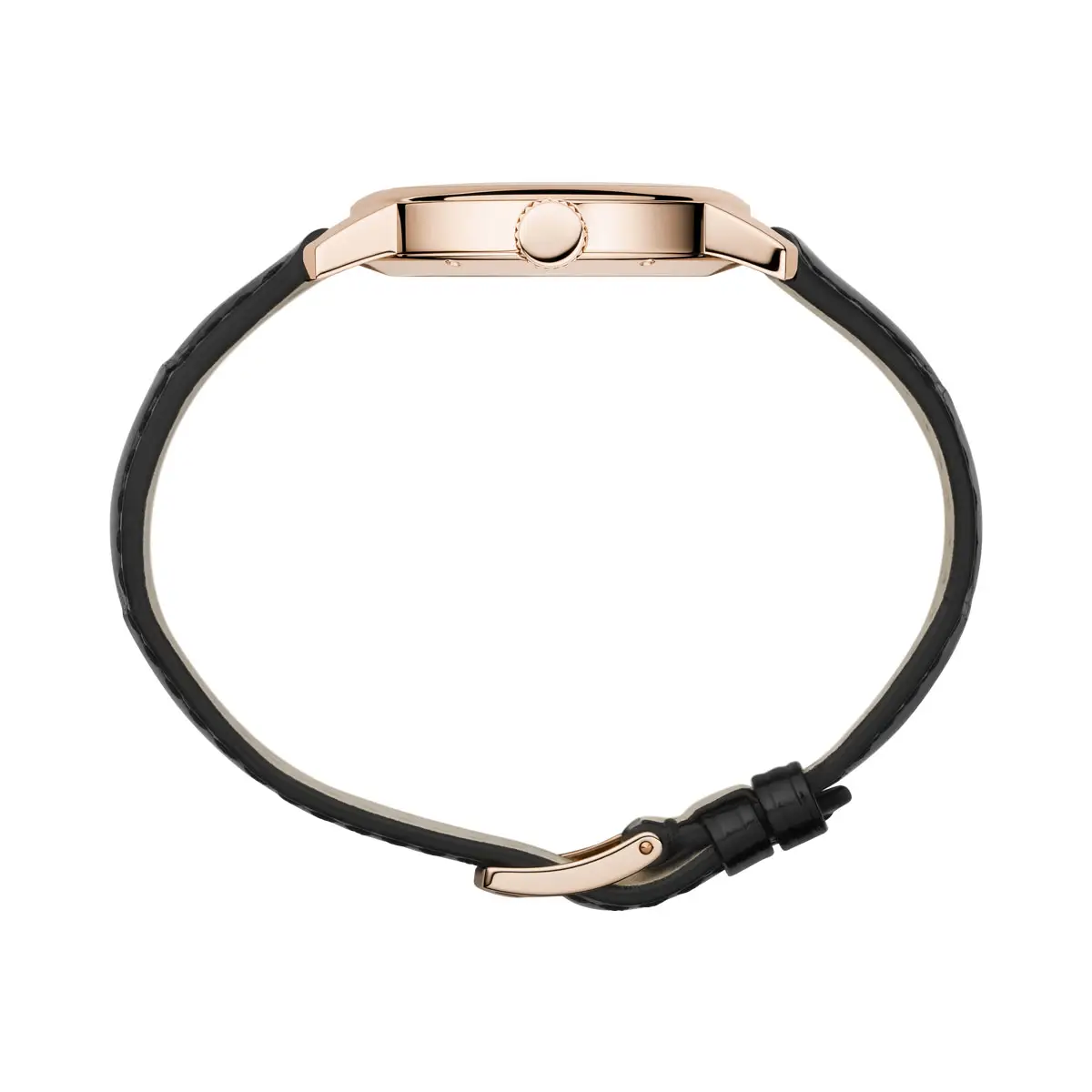 The watch is paired with a black alligator strap and a traditional pin buckle, appealing to lovers of classic elegance. The contrast between the black strap and rose gold case creates a sophisticated and harmonious aesthetic.