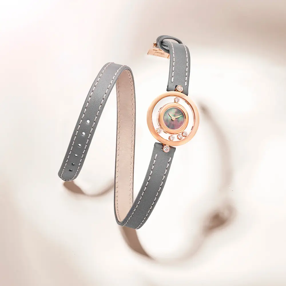 Chopard 's Happy Diamonds collection is an icon of creativity, joy and freedom in design. Since its introduction in 1976, it has introduced a revolutionary concept - free-moving diamonds set between two sapphire crystals that dance across the dial with every movement of the wrist.