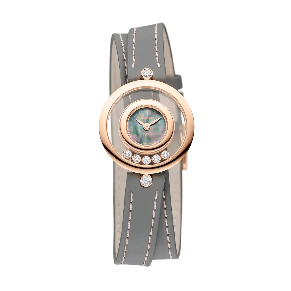 A grey leather strap with a classic pin buckle complements the rose gold case, completing the elegant look. With water resistance up to 30 meters (3 ATM), this model is perfect for both daily wear and special occasions. Chopard Happy Diamonds 209415-5003 are more than a watch – they are a jewel of joy, light, and refined femininity, designed to shine with every glance.