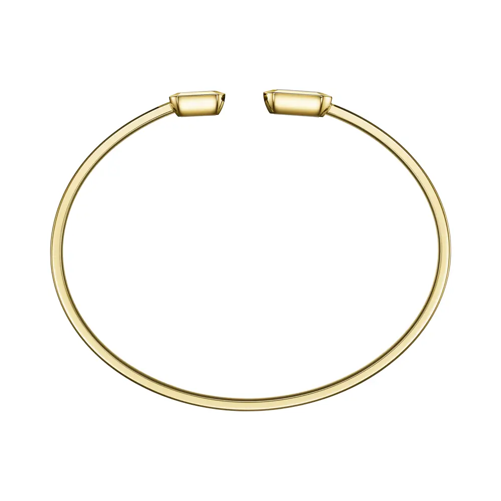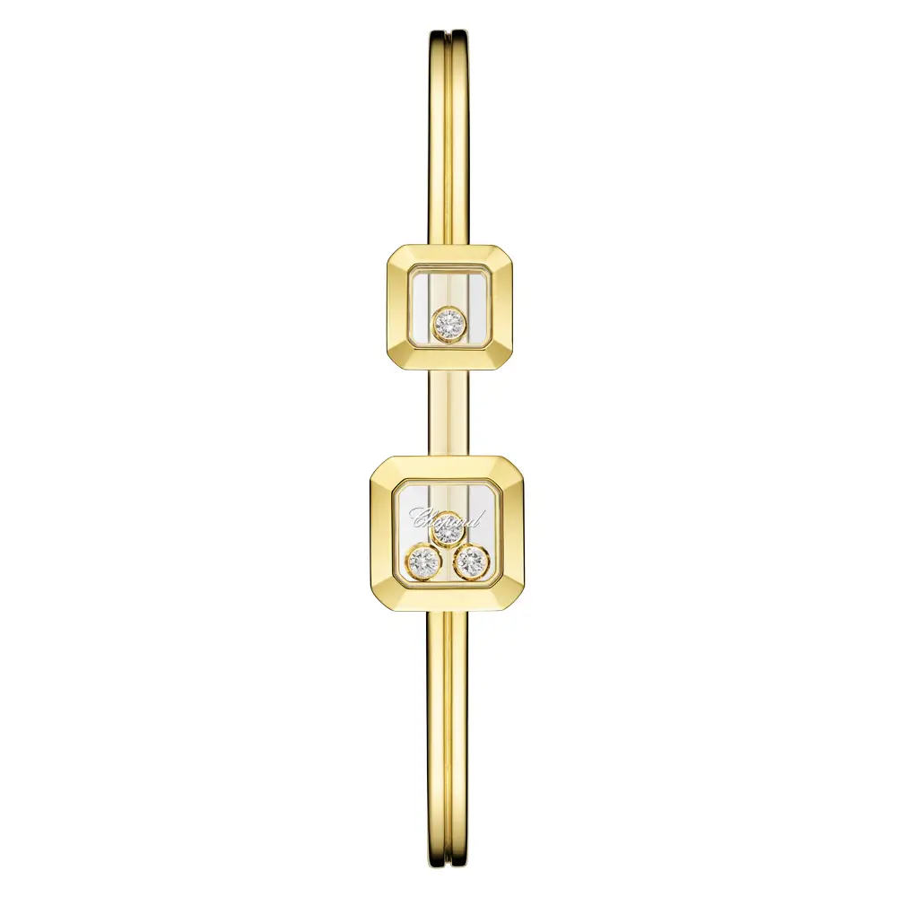 Chopard Happy Diamonds Icons Bangle 85A114-0002 is an iconic expression of joy, movement, and feminine elegance. Crafted from 18-carat ethical yellow gold, this refined bangle radiates warmth and brilliance. At its centre are free-moving diamonds enclosed between two sapphire crystals, dancing gracefully with every wrist motion — a signature element of the Happy Diamonds collection, symbolizing freedom, happiness, and the playfulness of life.