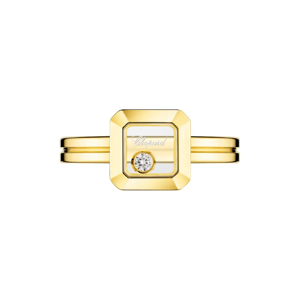 The Chopard Happy Diamonds Icons 82A114‑0110 is a sophisticated ladies’ ring from the iconic Happy Diamonds collection, symbolizing playfulness, freedom, and the joy of life. Crafted from 18kt yellow gold, the centerpiece features a freely moving brilliant-cut diamond weighing 0.05 ct, encased between two sapphire crystals. This signature design allows the diamond to “dance” gracefully, capturing light with every movement.