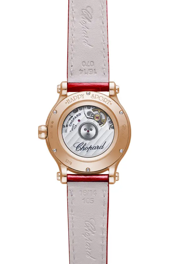 Inside beats the automatic mechanical calibre CHOPARD 09.01-C with a 42-hour power reserve and 27 jewels, celebrated for its precision and reliability. The transparent caseback reveals the beautifully finished movement. With 30-meter water resistance, this model represents the perfect balance of femininity, elegance and Swiss perfection. The Chopard Happy Sport 275378-5005 is not just a watch – it is a jewel of passion and individuality.