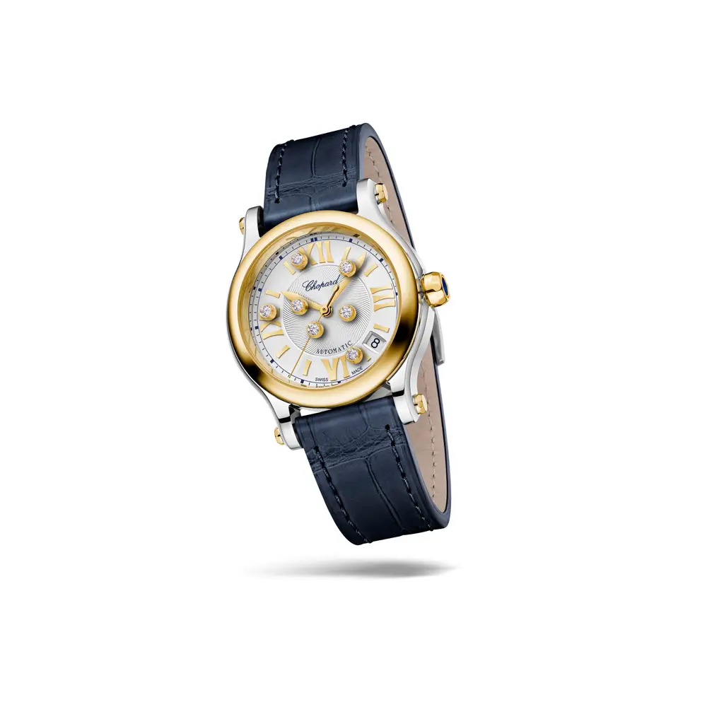 Inside the watch operates an automatic movement with a power reserve of up to 62 hours, known for its reliability and precision. The model is fitted with a blue alligator leather strap with a classic buckle and has a water resistance of up to 30 meters. Chopard Happy Sport in this version is an expression of freedom, playfulness and exceptional style - the ideal choice for women with a sense of beauty and technical perfection.