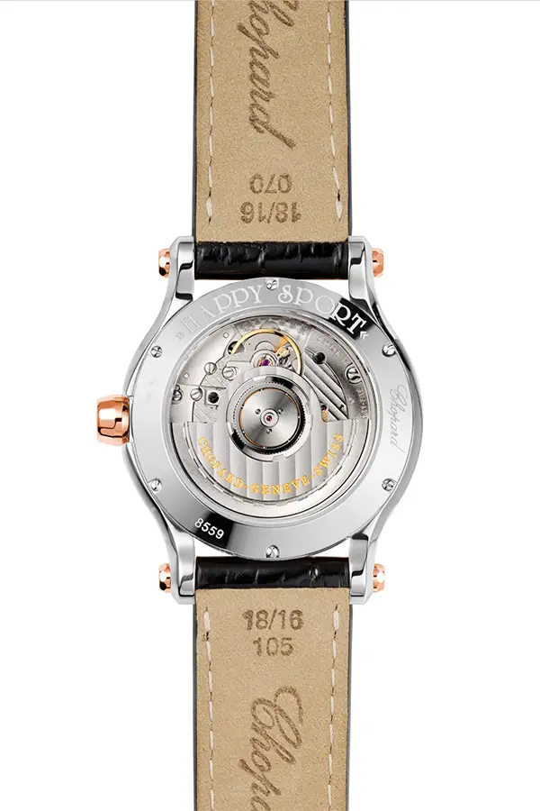 The Chopard Happy Sport 278559-6001 represents the perfect balance of technical precision, jewelry elegance and iconic design. This luxurious model from the celebrated Happy Sport collection captivates with its two-tone combination of stainless steel and 18k rose gold, enriched by Chopard’s signature free-floating diamonds that dance between two sapphire crystals, bringing brilliance to every movement.