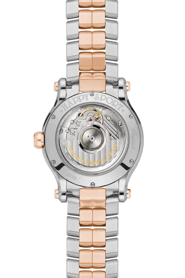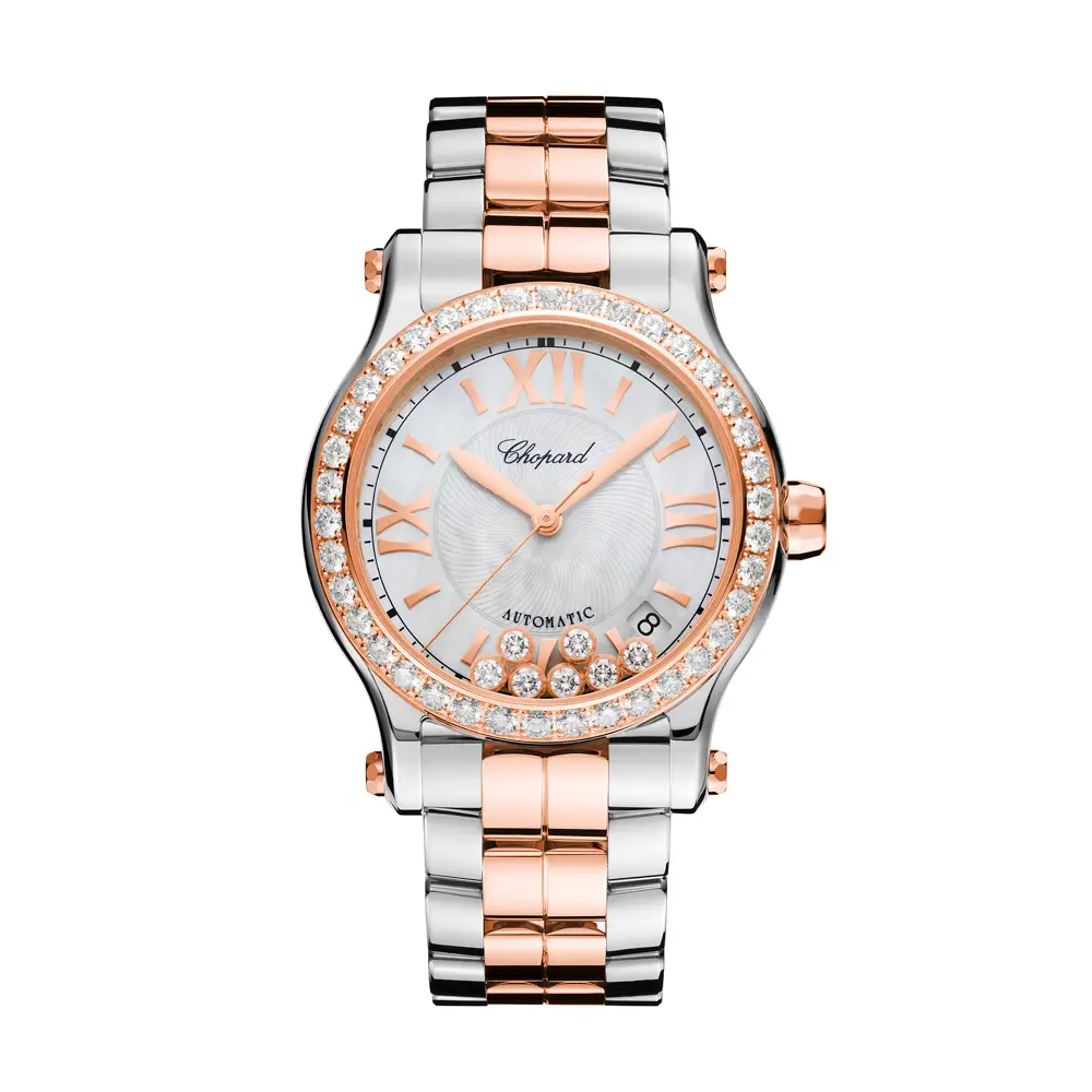The Chopard Happy Sport 278559-6007 embodies harmony between bold expression and delicate elegance – a timepiece that makes a statement while embracing refined femininity. Crafted from stainless steel with an opulent 18kt rose gold bezel, it exudes warmth and sophistication.